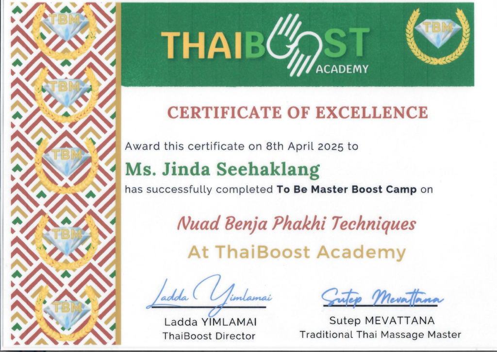 Utviklet av Master Sutep Mevattana ved THAIBOOST Academy, er 4+1 Thai Solution Massasje en avansert behandlingsform som kombinerer eldgamle tradisjoner med moderne kroppskunnskap. Basert på klassisk thailandsk massasje, er denne teknikken et resultat av over 25 års erfaring og finjustering – med inspirasjon hentet fra verdens mest anerkjente behandlingsmetoder.